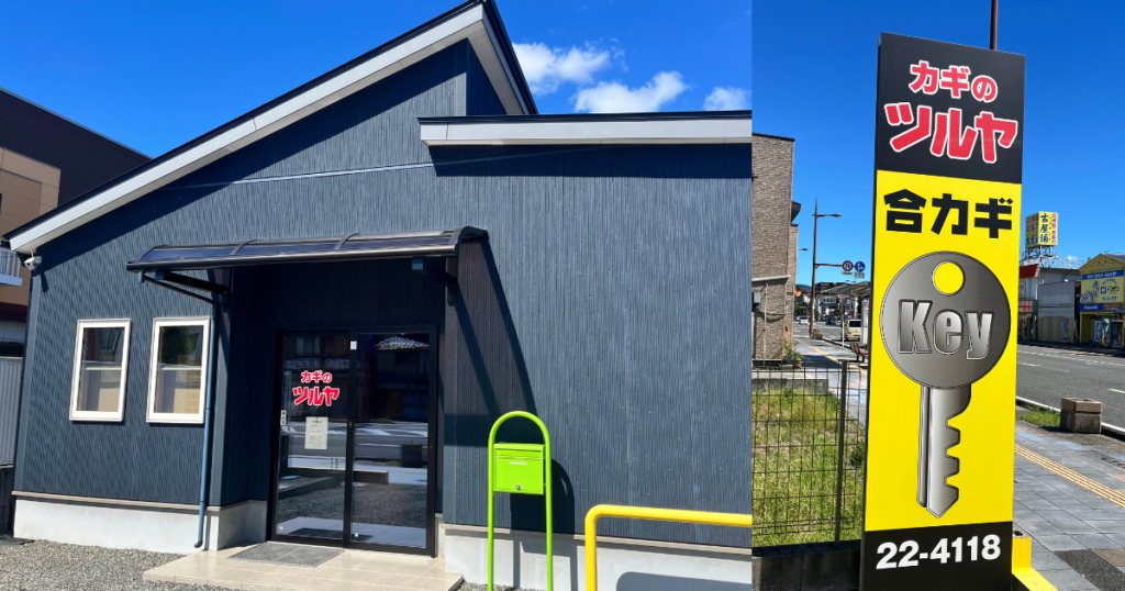 国道3号線沿いにある黄色い大きな看板が目印の鍵屋さんです!